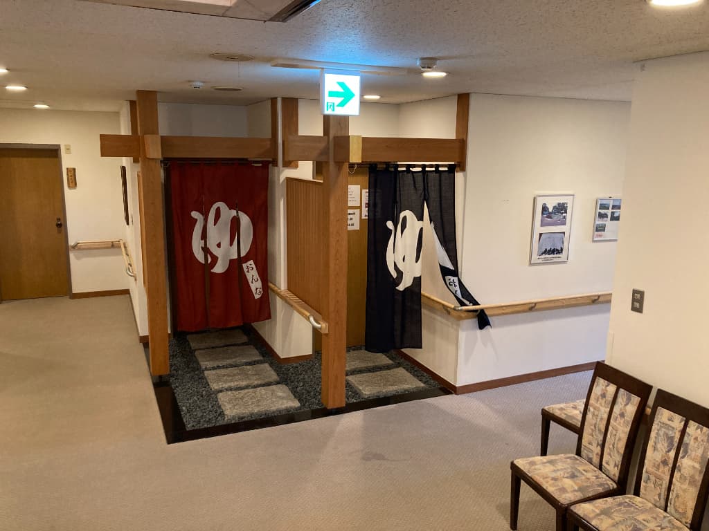 お風呂は温泉で、大浴場と小浴場と2つある。浴場は男女日替わりで入れ替わる。