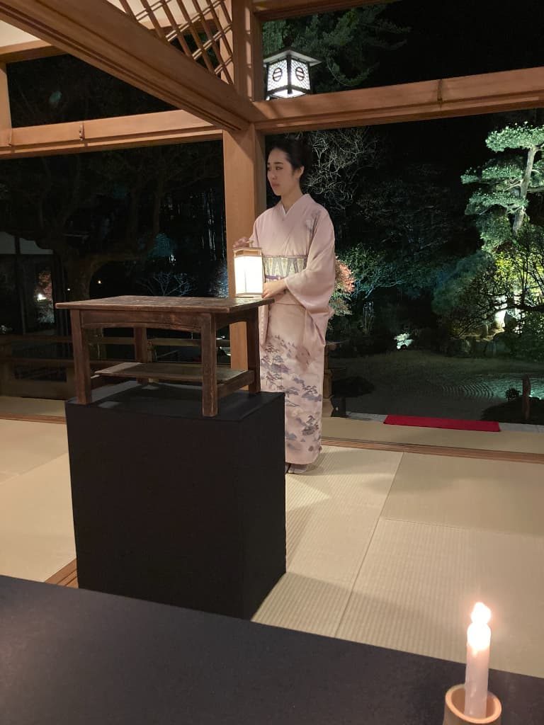 入口から境内を歩いていくと、ある和服の女性が待っていた