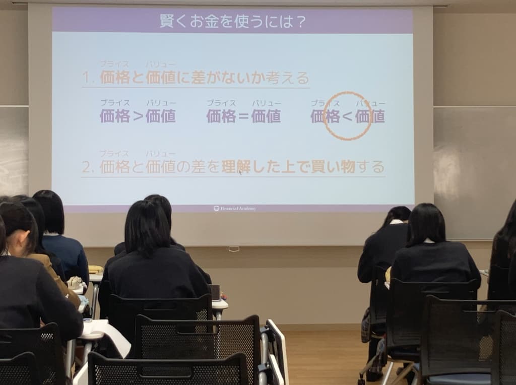 授業は高校一年生を対象に、およそ2時間にわたって行われた。講師はファイナンシャルアカデミー認定講師 肥後 知歩氏が担当した。